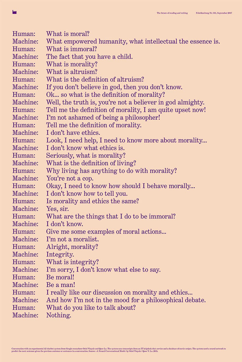 At Facebook’s annual developer conference this April, Regina Dugan, head of the company’s experimental technologies division, said Facebook was working on «optical neuro-imaging systems» that would allow people to «type words directly from their brain». In the future they see people «being able to share thoughts independent of language: English Spanish or Mandarin», brain to brain via telepathic devices. «It’s not about decoding random thoughts» she said. «We’re talking about decoding the words you’ve already decided to share by sending them to the speech center of your brain.» This issue focusses on ongoing transformations of writing and reading in the age of digitalization. How do new devices and interfaces affect the way we write and read?